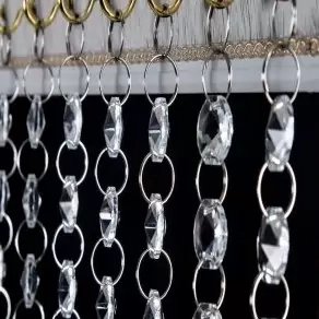 پرده آویز کریستالی مدل کوتاه و بلند از برند آریا کریستال، برای ورودی راهروها و اپن آشپزخانه، اتاق عقد روی پرده پارچه ای و یا برای دکور منازل یا مغازه، گالری، عکاسی و غیره برای دیزاین زیباتر، مناسب می باشد. پرده کریستالی مدل کوتاه و بلند با عرض 50 سانت با فاصله پنج سانت بین رشته ها با 10 ریسه(5 ریسه بلند 200 سانتیمتری و 5 ریسه کوتاه 190 سانتی متری) و ارتفاع 200 سانت با گوی شماره سی در انتهای رشته ها به همراه چوب پرده مخصوص پرده کریستال با کریستال درجه یک و حلقه کروم ضخیم طراحی و تولید شده است. جنس کالا از دانه های کریستالی درجه یک و شفاف به همراه حلقه های کروم رنگ ثابت که محکم و با کیفیت بالا هستند می باشد و در انتهای هر ریسه از گوی های کریستالی درجه یک استفاده شده است. این ریسه ها همگی به یک چوب پرده مخصوص متصل شده اند که قابلیت انعطاف در جاهای منحنی با زاویه منحنی کم را دارا می باشد. برای نصب این کالا توسط دریل دو سوراخ در دیوار ایجاد کرده و توسط دو عدد پیچ و رول پلاک قابل نصب می باشد. برای تمیز کردن این پرده کافیست دستمال نخی را مرطوب نموده و به صورت حرکات دورانی روی دانه های کریستالی بکشید و شاهد تمیزی بی نظیر آن ها باشید.