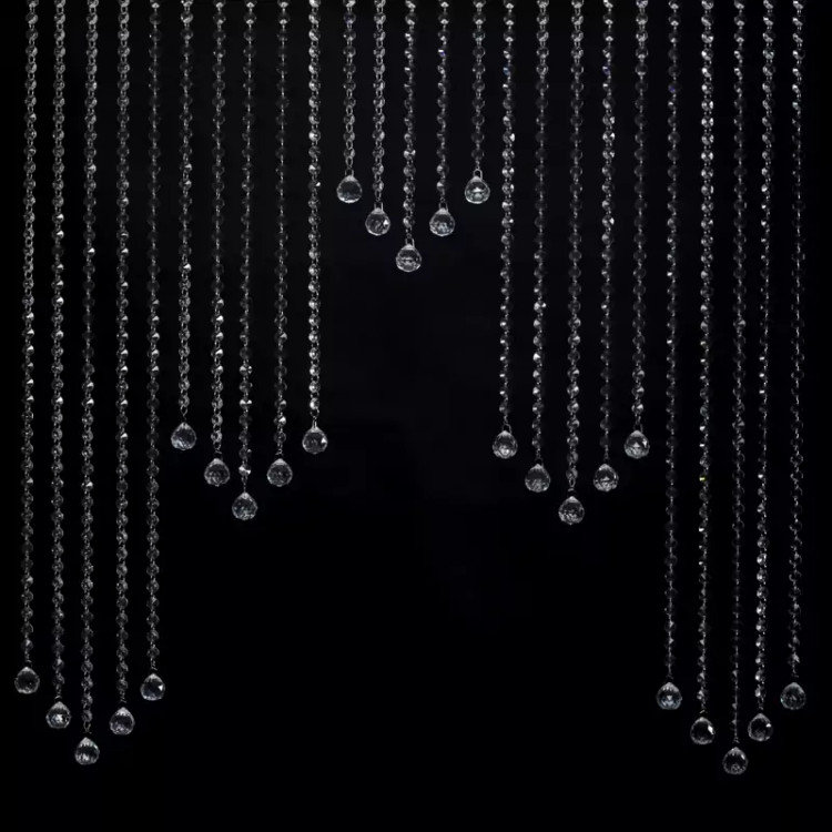 پرده اویز کریستال مدل ابشاری با عرض ۱ متر با فاصله ۴ سانت بین رشته ها با ۲۵ رشته با گوی شماره سی در انتهای رشته ها به ***همراه چوب پرده مخصوص پرده کریستال ***با ریسه و گوی بیرنگ.