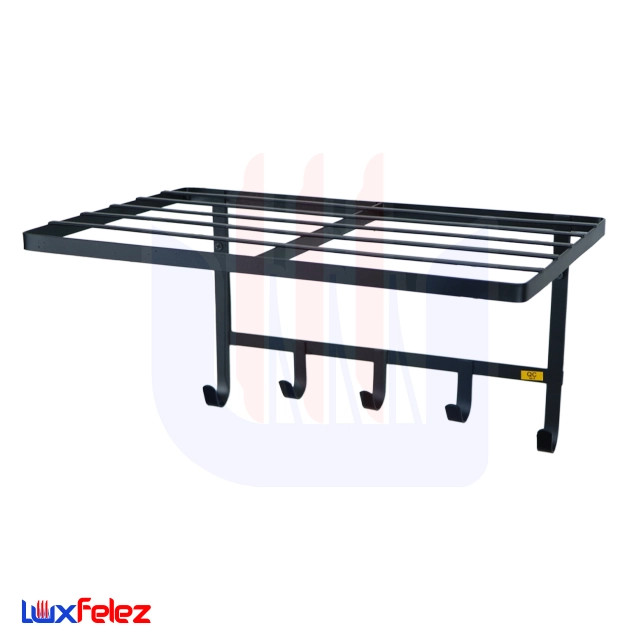 این محصول از دو فسمت رخت آویز و فضای توشه بار در فسمت فوقانی تشکیل شده است که هر دو در یک راستا مس باشد و ابعادی به طول40سانتی متر و عرض26سانتی متر راشامل می شود که این ابعاد در تصویر قرار گرفته و قابل مشاهده است.دارای ۵ شاخه قلاب برای آویز انواع لباس،کیف و سایر لوازم می باشد و محلی مناسب و امن برای قرار دادن سایر لوازم می باشد.