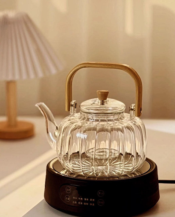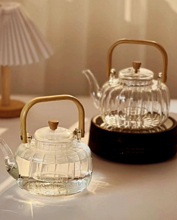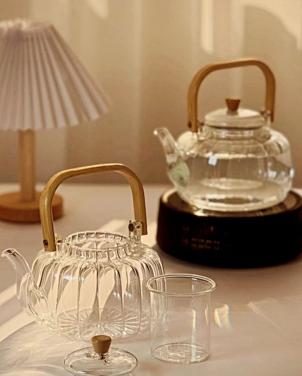 قوری پیرکس بروسیلیکات با دسته بامبو شیار دار وارداتی
