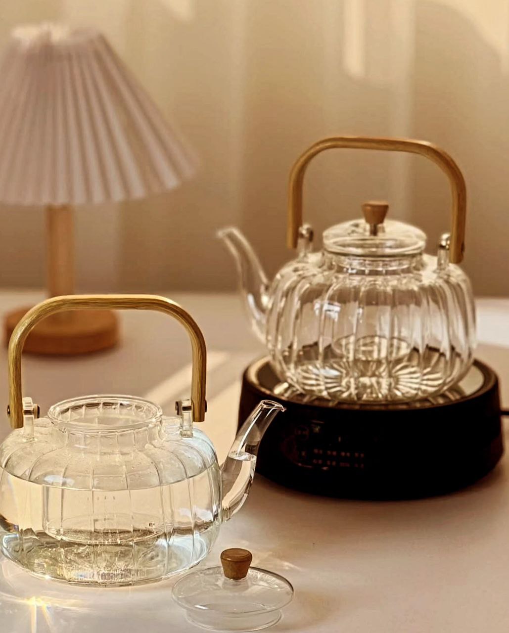 قوری پیرکس بروسیلیکات با دسته بامبو شیار دار وارداتی