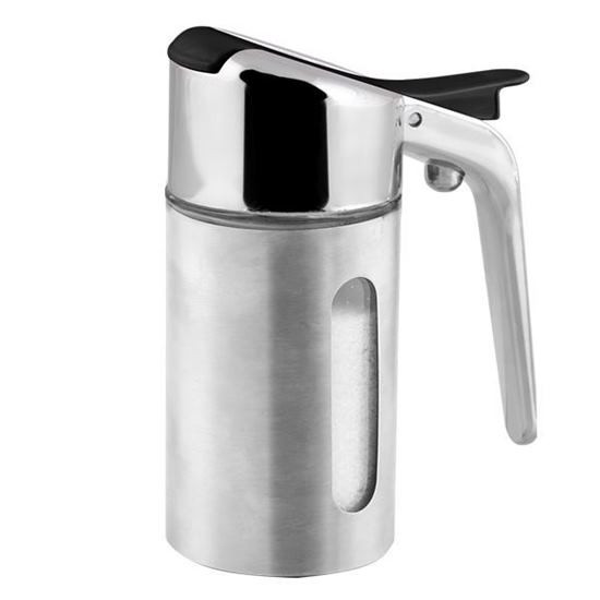 شکرپاش سرکج دور استیل با بدنه ای از جنس شیشه با روکش استیل و درب پلاستیک و آبکاری کروم، درپوش محافظی را برای جلوگیری از ریختن اضافی شکر به همراه دارد. این طراحی کاربردی به همراه مدل زیبای آن این محصول را تبدیل به انتخابی ایده آل برای مشتریان زیباسازان نموده است.