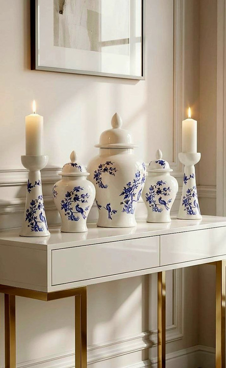 جینجرجارها و شمعدانیهای دستساز سرامیکی طرح طاووس
