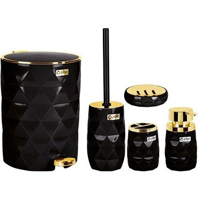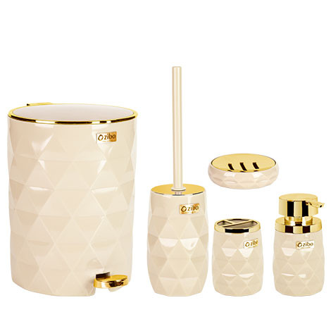 هماهنگی یا به اصطلاح ست بودن رنگ ها، می تواند سلیقه ی خوب شما را به بقیه نشان دهد، به خصوص اگر جنس مورد استفاده انعکاس دهنده ی نور باشد جالب توجه خواهد بود. ست بهداشتی دایموند طلایی زیباسازان شامل سطل زباله، فرچه و محفظه ی آن، جای صابون، ظرف مایع دستشویی و جای مسواک است، که از لحاظ رنگ و ظاهر هم شکل هستند. درب سطل به صورت بادبزنی است