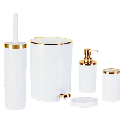 یکی از ضروری ترین لوازم برای حمام و توالت بعد از شیرآلات و روشویی کابینتی، ست سرویس بهداشتی است.زیرا خرید ست سرویس بهداشتی نه تنها به ایجاد نظم در فضای سرویس بهداشتی کمک می کند بلکه در حفظ بهداشت و سلامتی افراد خانواده نیز تاثیرگذار است. ست بهداشتی پالاس طلایی 5تکه است که شامل سطل وفرچه،جامایع،جاصابونی و جامسواکی میباشد.