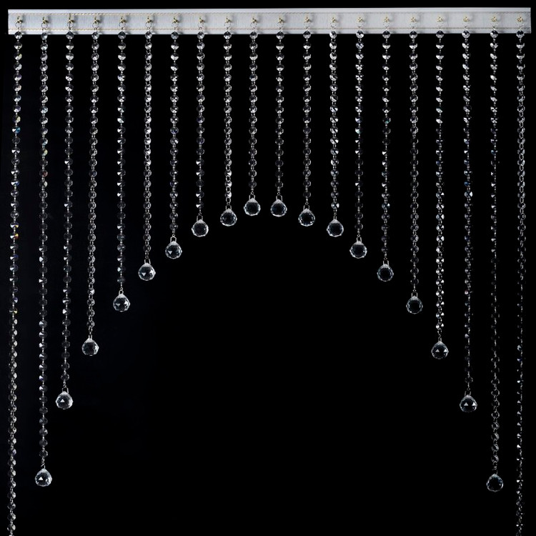 پرده اویز کریستال مدل هلال با عرض یک متر با فاصله پنج سانت بین رشته ها با ۲۰ رشته و ارتفاع بلندترین ۱۰۰و کوتاهترین ۳۰ سانت با گوی شماره سی در انتهای رشته ها به همراه چوب پرده مخصوص پرده کریستال با ریسه و گوی بیرنگ. قابل سفارش با اندازه های شما.مناسب برای دکور منزل ودر قسمت راهرو و ورودی .***ارسال بصورت پسکرایه به کل ایران با تیپاکس***