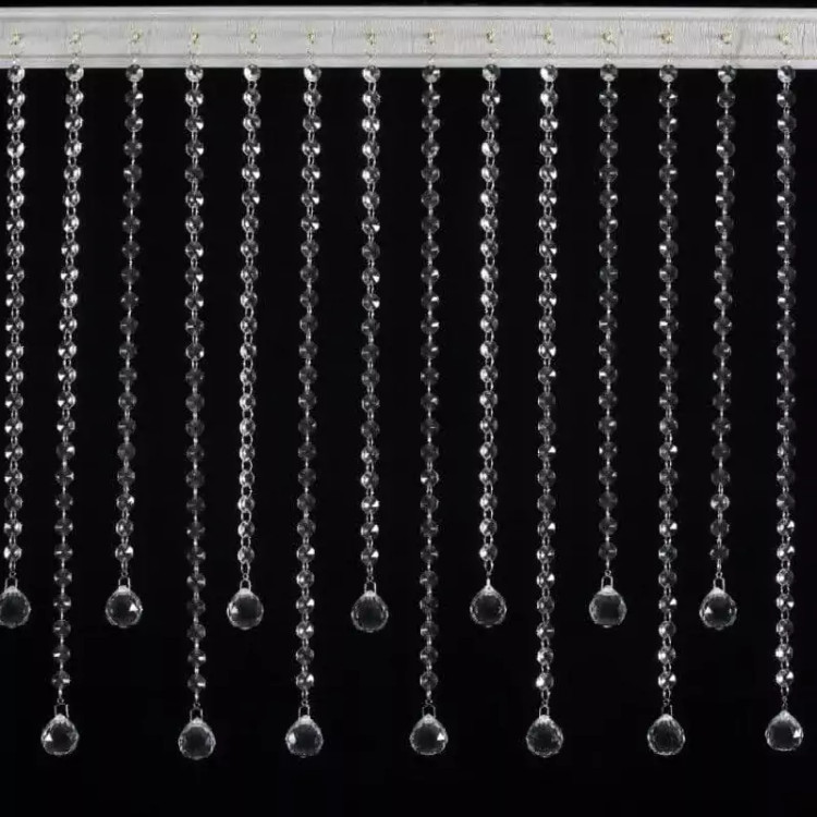 پرده آویز کریستالی مدل کوتاه و بلند از برند آریا کریستال، برای ورودی راهروها و اپن آشپزخانه، اتاق عقد روی پرده پارچه ای و یا برای دکور منازل یا مغازه، گالری، عکاسی و غیره برای دیزاین زیباتر، مناسب می باشد. پرده کریستالی مدل کوتاه و بلند با عرض 50 سانت با فاصله پنج سانت بین رشته ها با 10 ریسه(5 ریسه بلند 50 سانتیمتری و 5 ریسه کوتاه 40 سانتی متری) و ارتفاع 50سانت با گوی شماره سی در انتهای رشته ها به همراه چوب پرده مخصوص پرده کریستال با کریستال درجه یک و حلقه کروم ضخیم طراحی و تولید شده است. جنس کالا از دانه های کریستالی درجه یک و شفاف به همراه حلقه های کروم رنگ ثابت که محکم و با کیفیت بالا هستند می باشد و در انتهای هر ریسه از گوی های کریستالی درجه یک استفاده شده است. این ریسه ها همگی به یک چوب پرده مخصوص متصل شده اند که قابلیت انعطاف در جاهای منحنی با زاویه منحنی کم را دارا می باشد. برای نصب این کالا توسط دریل دو سوراخ در دیوار ایجاد کرده و توسط دو عدد پیچ و رول پلاک قابل نصب می باشد. برای تمیز کردن این پرده کافیست دستمال نخی را مرطوب نموده و به صورت حرکات دورانی روی دانه های کریستالی بکشید و شاهد تمیزی بی نظیر آن ها باشید.