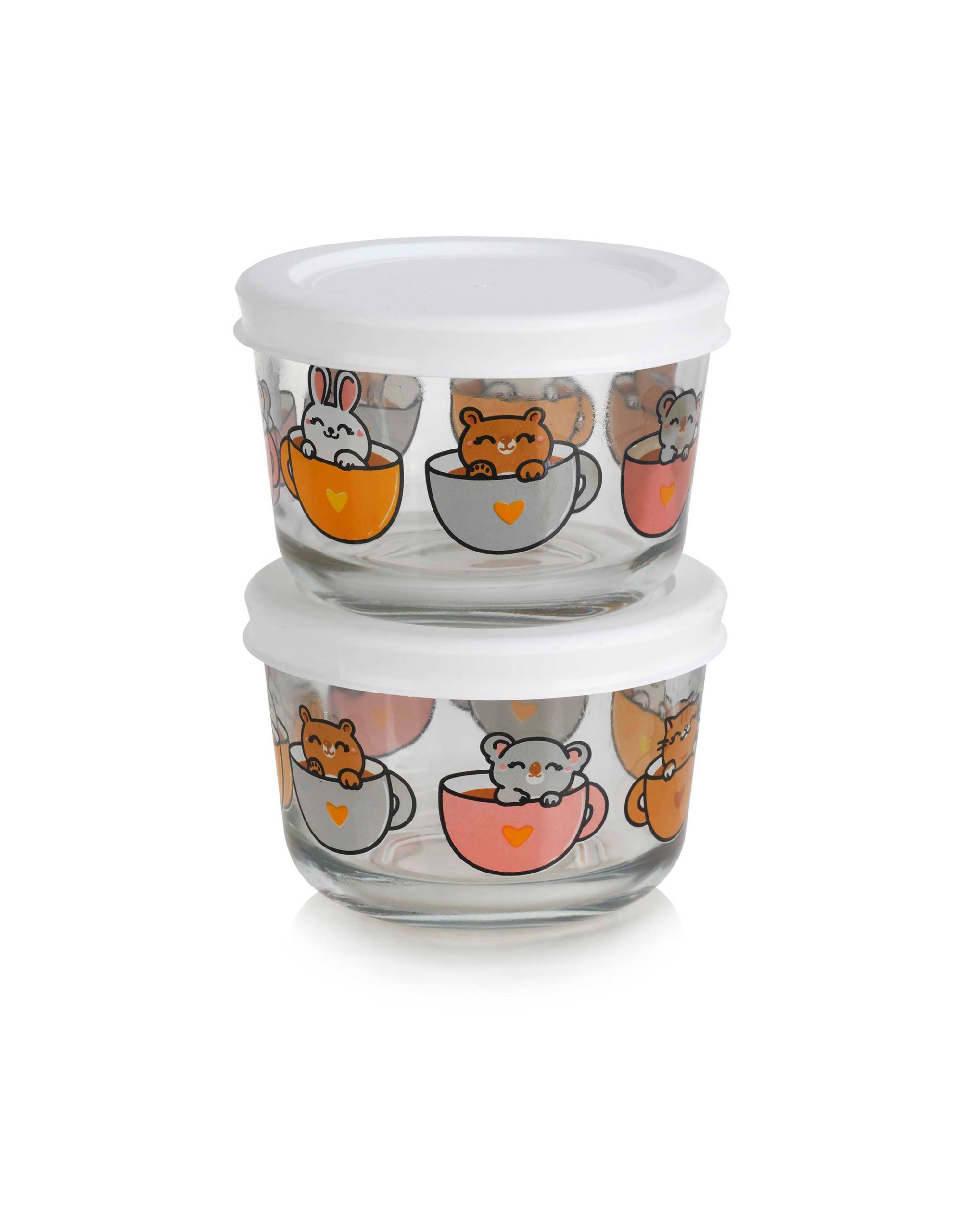 ظرف شیشه ای گرد 190 میلی لیتری چاپ عروسکی 2عددی
